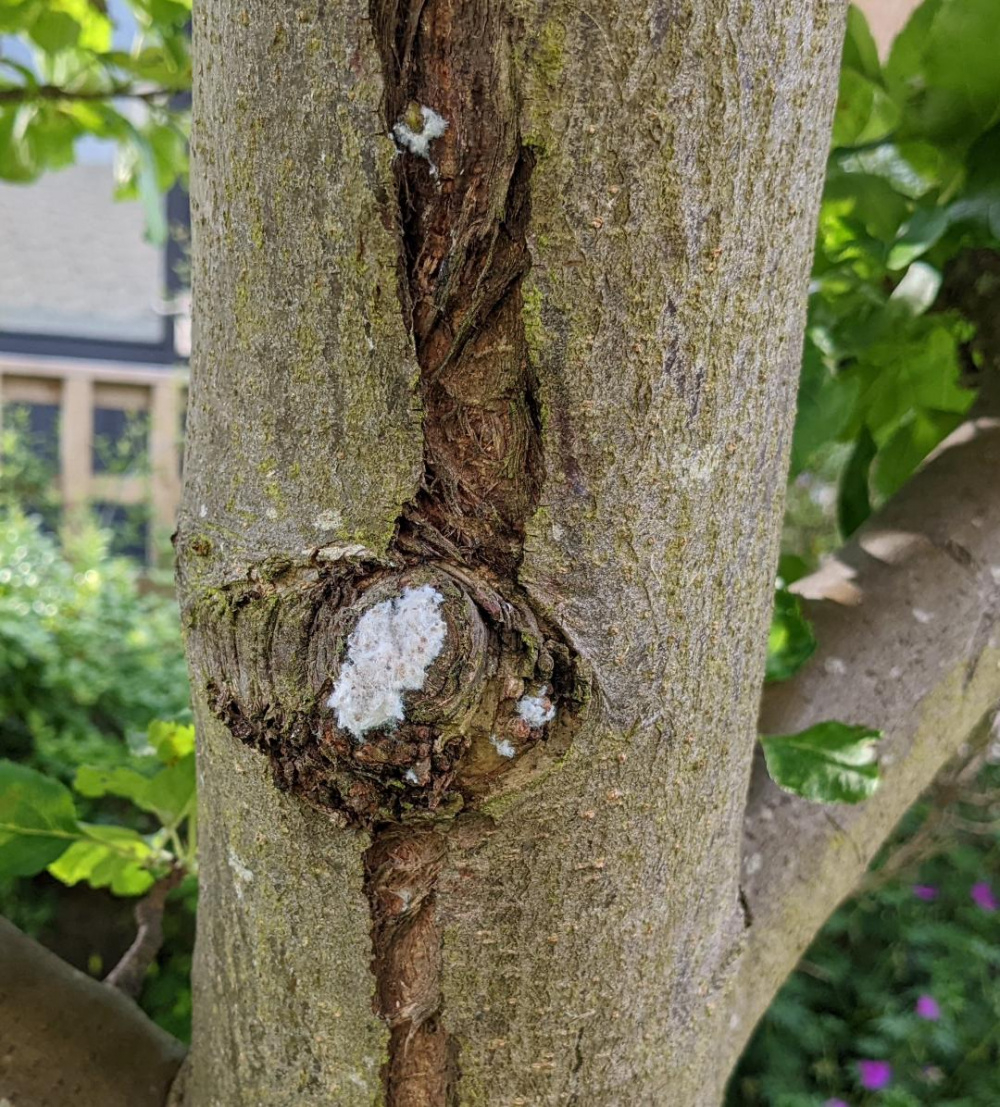 Poorly apple tree - white fluffy crystals