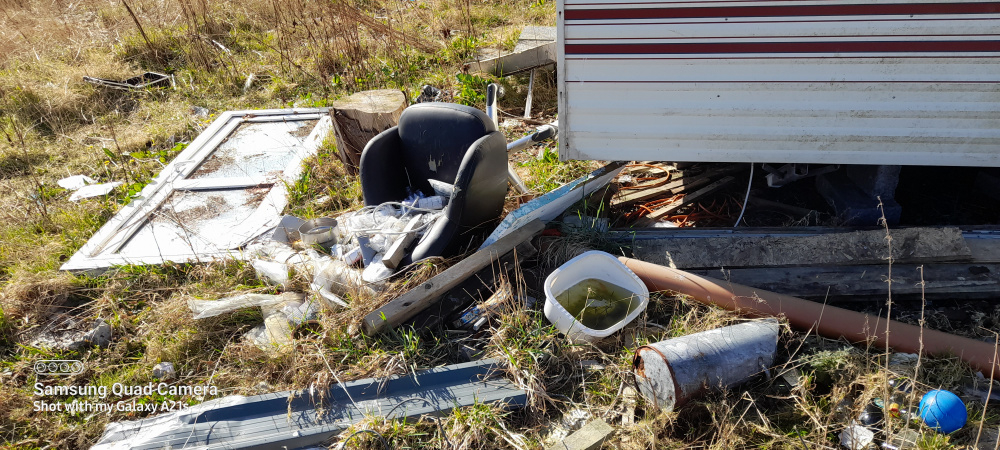 Here are a few picture of how it looked when i first got it - i have removed all the junk /bonfire rubbish, the old caravan and office is now gone also. There was no mention of services in the sale info, but I have located water and electicity pipes/wires so thats been a bonus.