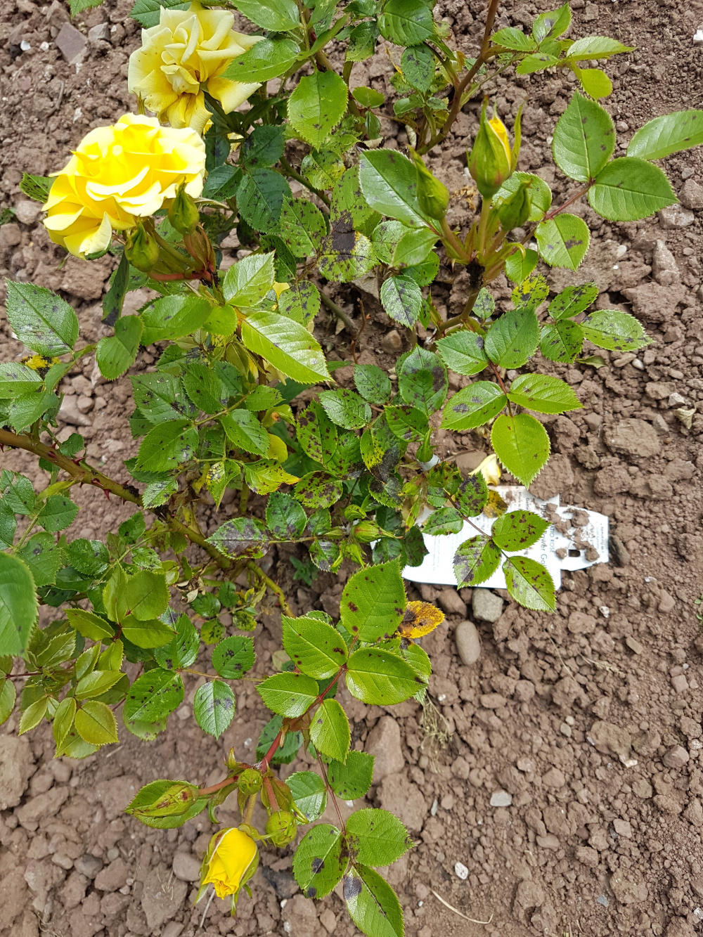 Is this blackspot or aphid damage. It does have a few aphids on the flower stems.