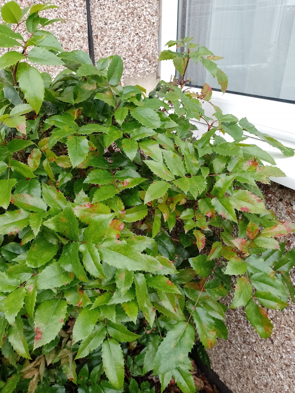 With your Mahonia, don't worry about it being sparse once you've pruned off the areas with the damaged leaves, they will soon regrow in the warm months. The shrub seems pretty established, so it should recover soon.