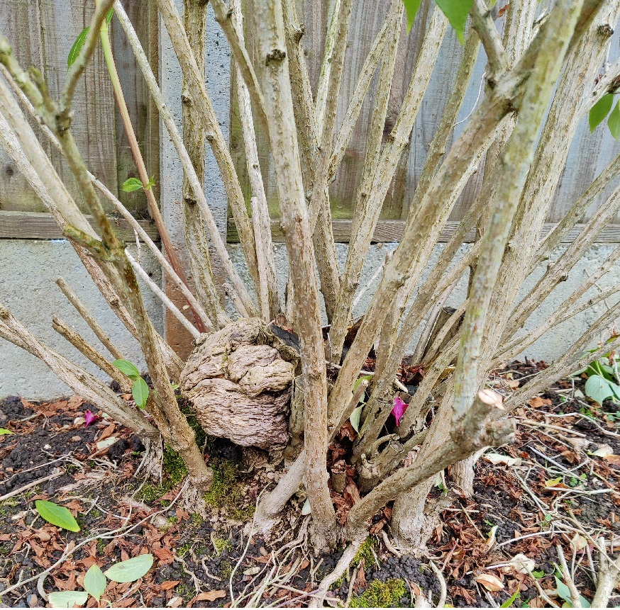 I've been pruning back my Weigela's and previously thought it was a wasp nest so I didn't touch it. After some looking around, it looks as though this may be a crown gall?