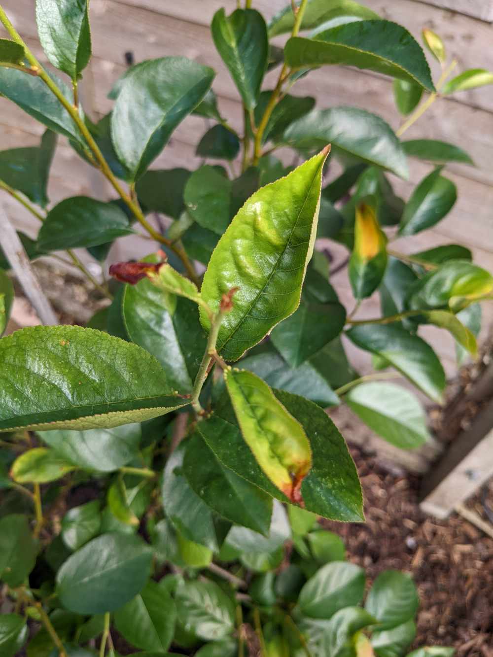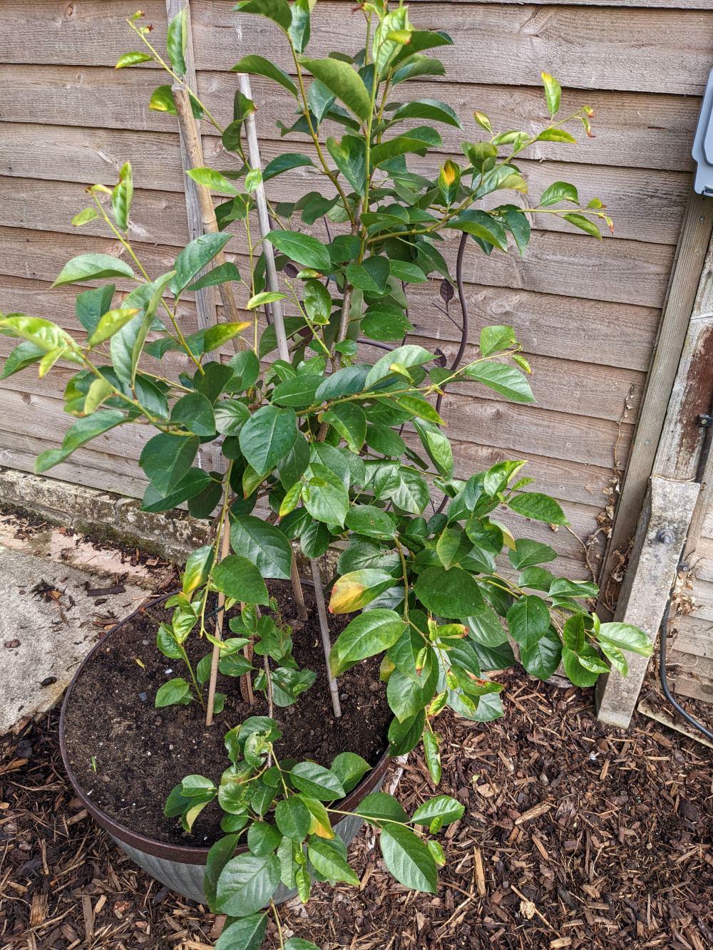 Novice gardener looking for advice. We've had a Cherry Bush since last July and it over wintered well in our greenhouse coming back to life in March. There now seems to be issues with it but I'm not sure exactly what the problem is. It has recently been repotted to see if that helps the issue of brown/yellowing leaves. That seemingly hasn't helped at all though. Any advice or views on what the issue is are greatly appreciated!