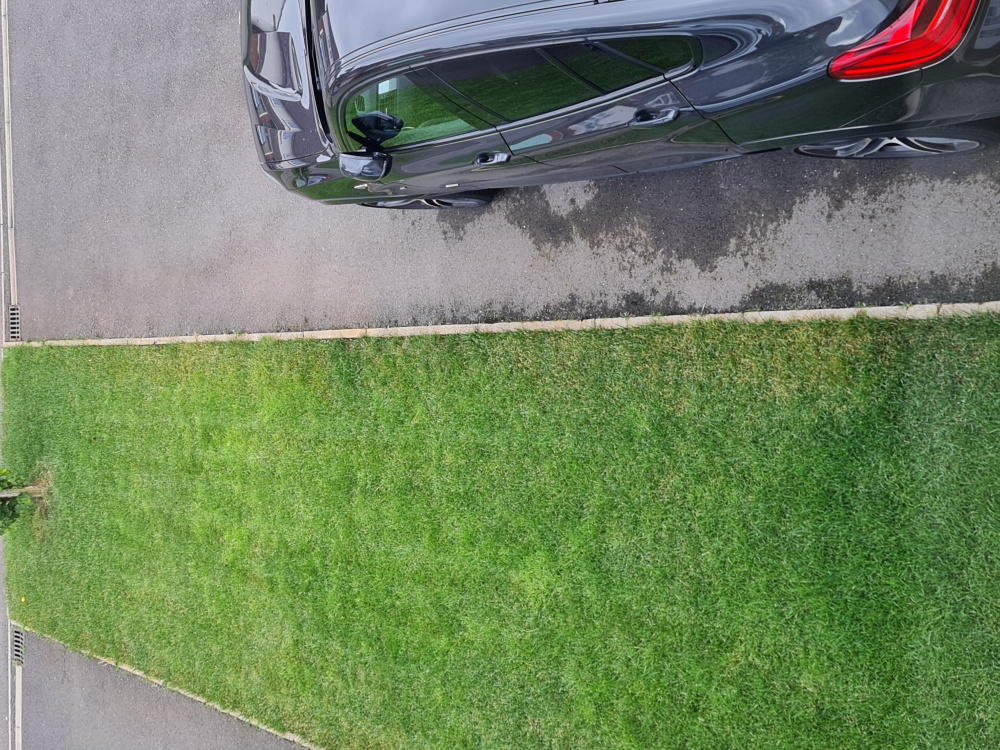 As you can hopefully see from the arial shots front and back of my garden, my grass has inconsistent spots of brown and patchy grass at the back and at the front, which is a horizontal patch, on the edges, it appears sparse, brown and not the best quality.