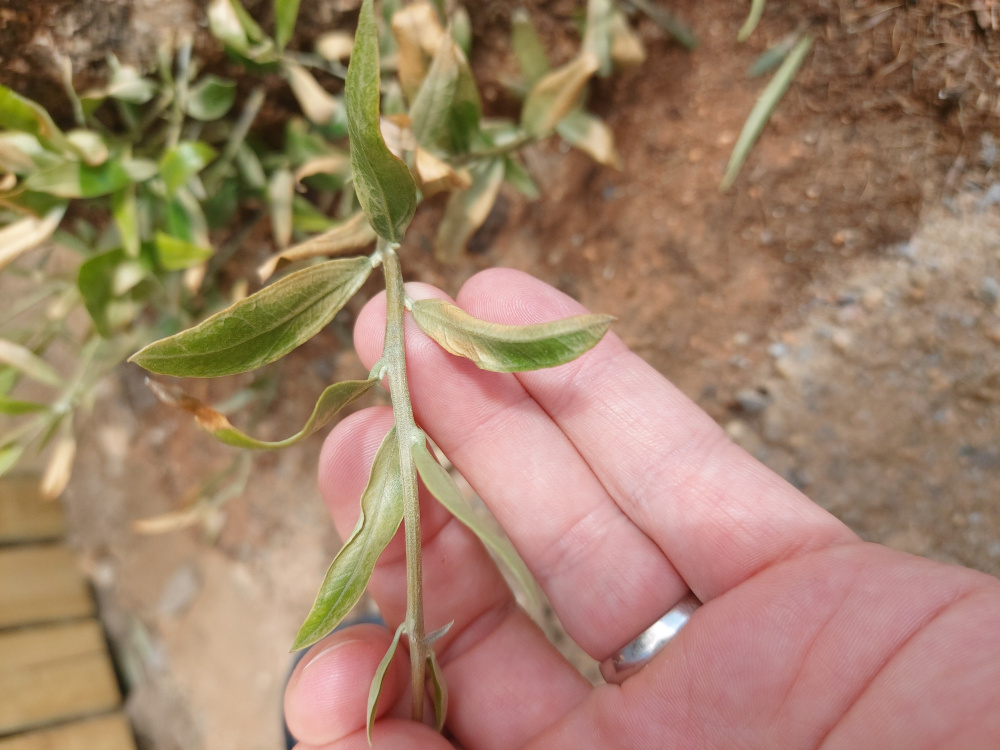 I bought an Gnarled Olive Tree from Costco last week, potted and transplanted into the ground in my back garden the next day. When I took it home it was looking really healthy, the branches and leaves on top were a dark green, healthy looking and the bottom of the trunk had quite a few shoots with leaves which were really green. Since planting I feel like the leaves are getting yellower by the day from the shoots at the bottom and on the end of the thin branches on the top of the tree. They feel brittle and are curling and or dropping off.