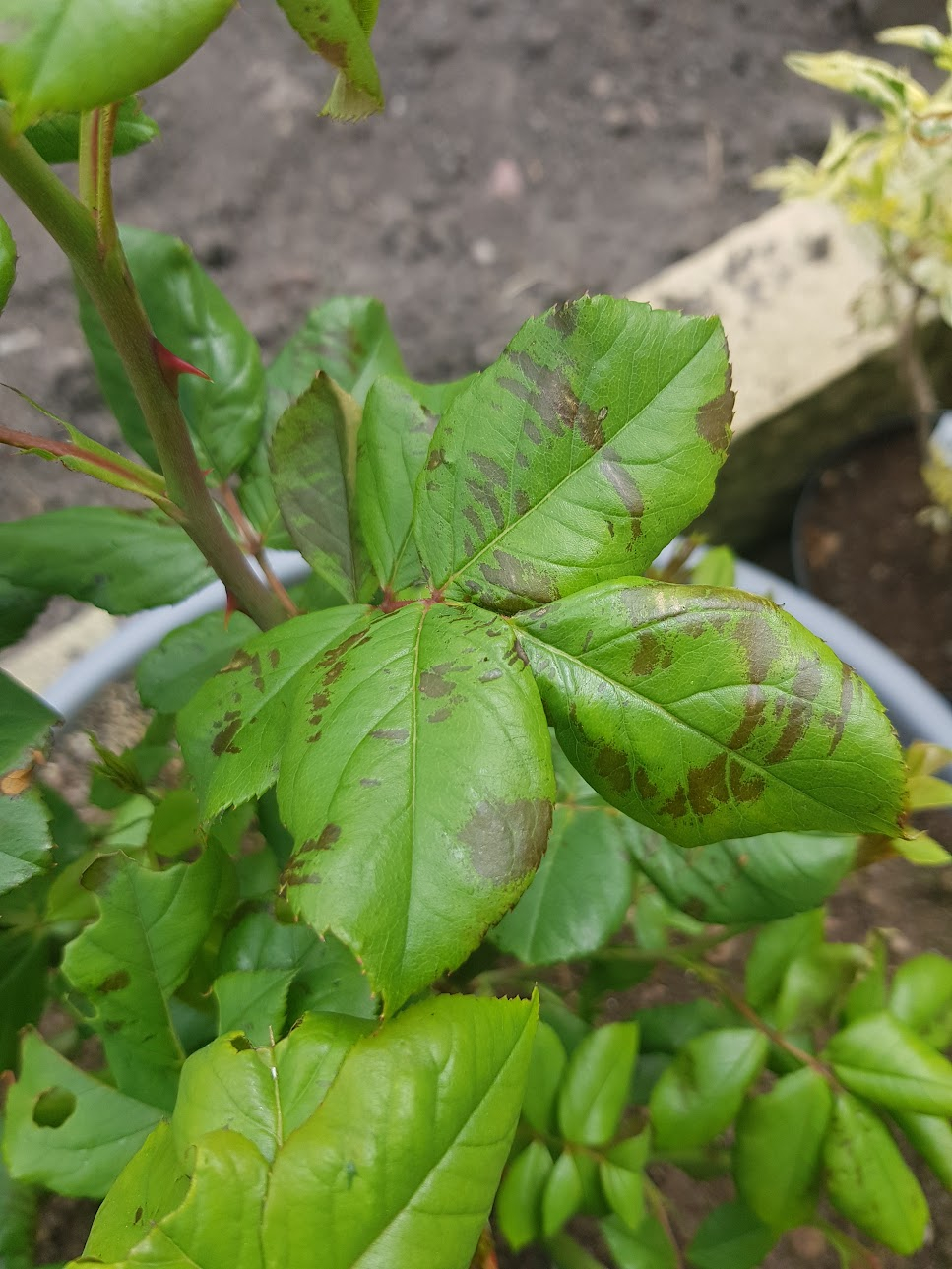 Are the markings on the leaves black spot? Or some other kind of mildew fungus perhaps? Not sure how best to deal with it, any rose growers have some advice?