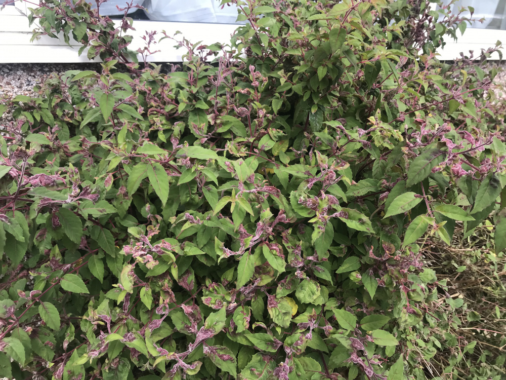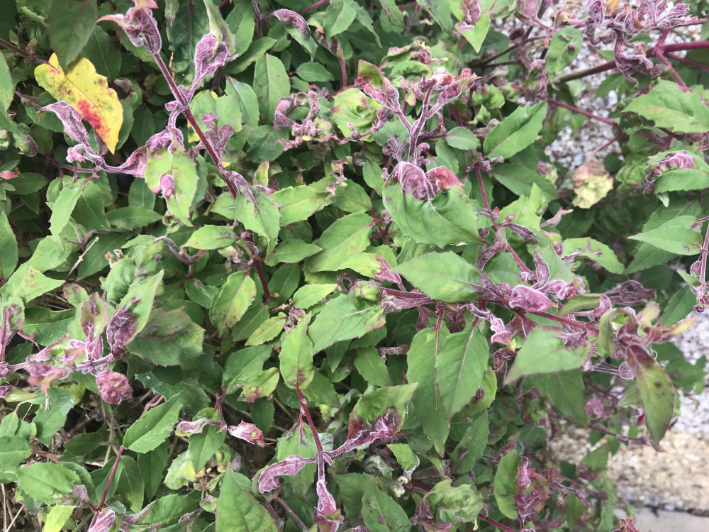 I have a hardy Fuchsia in the front south facing garden. It’s planted by the wall under the living room. It’s been there 20 years. Give it TLC and all seems fine but last 2 years notices purple colour leaves at the end of the stems, leaves are also curled up. 90% of the plant has this, however, some branch’s next to the wall are okay. It’s planted next to a hydrangea, which too has purple leaves, which I seen before over the years but only the last and this season for Fuchsia. Any ideas, what I should do. thank you. 0
