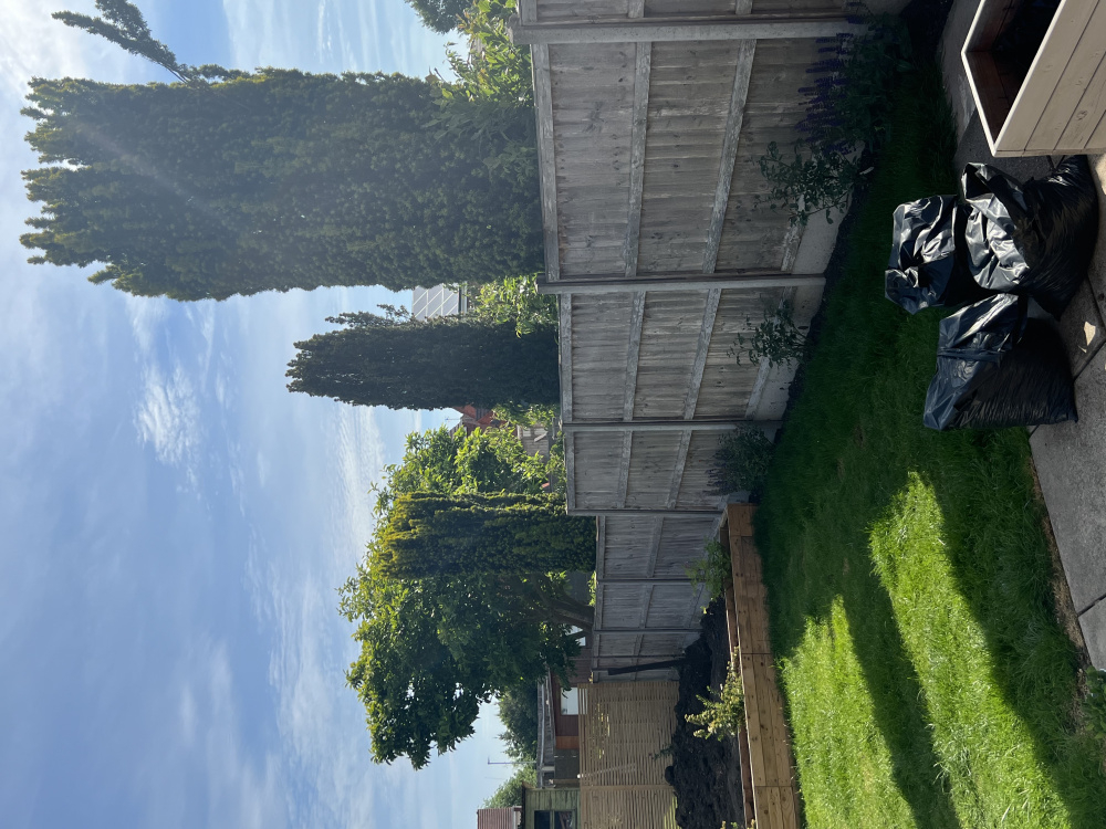 I don’t know if it’s going to be a hate that I have to deal with but these are an eye saw when I come into the garden as you can see there is 3 all different heights but they block light from the garden to an extend but they are really over baring.