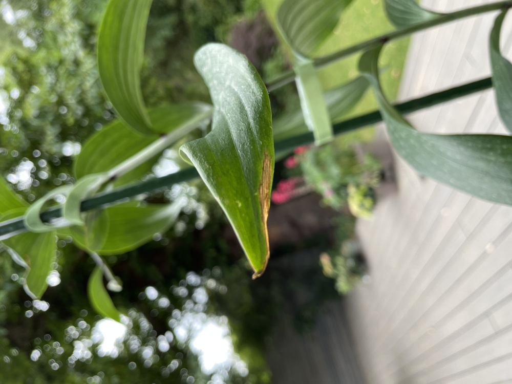 Just noticed that some of the leaves on these lilies have gone brown or yellow at the edges, is this a sign of under watering or over watering or something else?