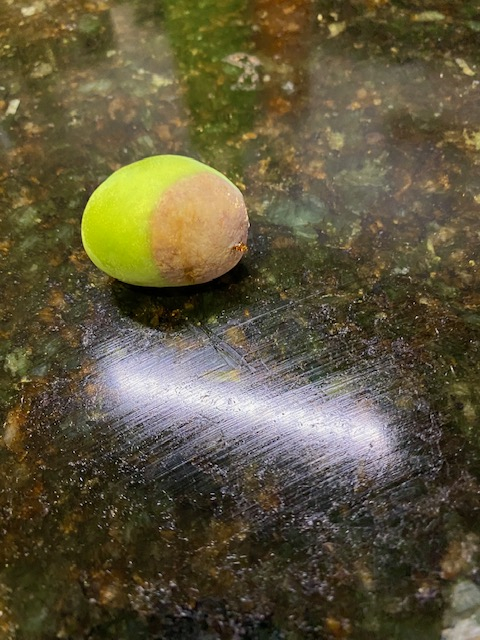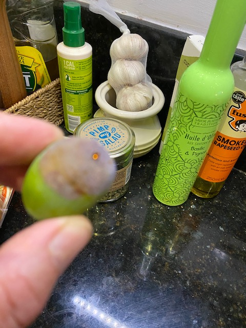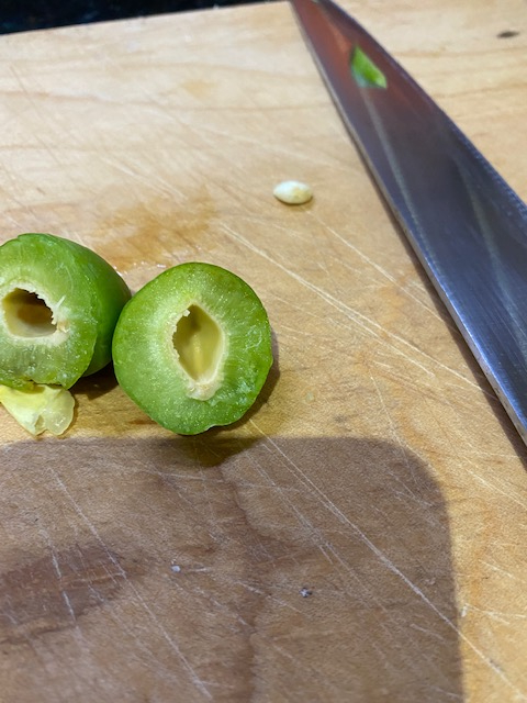 No maggot. The colour is more purple/plum coloured than brown as in the photo. Sorry the second one is out of focus. The orange dot is the resinous stuff. Some of the plums are green, but hard with shrivelling skin. Very disappointing. I lost all my cherries to the birds because otherwise occupied organizing a funeral etc when I should have been netting them, but I was taking consolation (from the loss of cherries) in the very promising proto-plums.