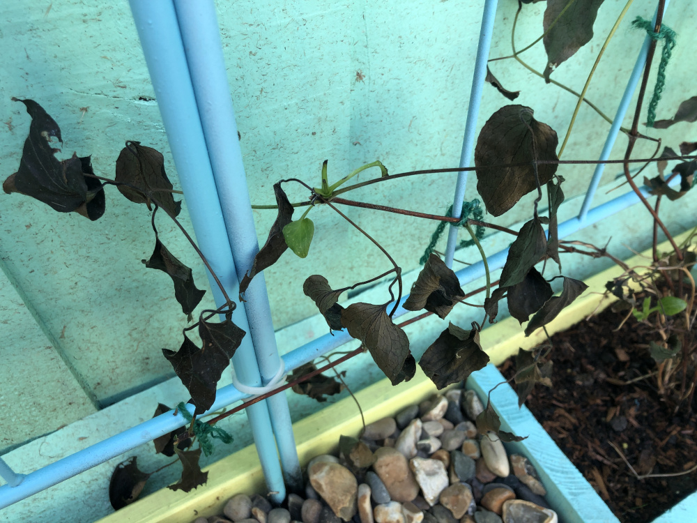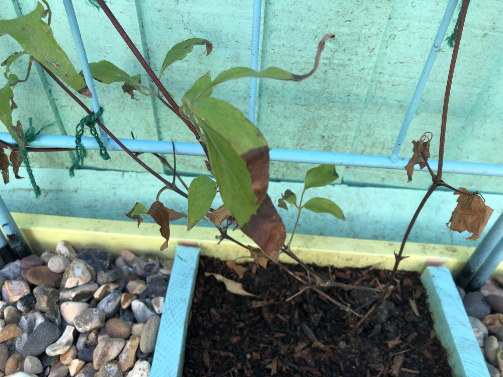 Slugs/snails can easily damage growth too- as most of us who grow clematis know only too well! That then causes stems to wither and die back. Even stems rubbing against supports in rough weather can cause damage. I get a lot of that through the growing season, so a double whammy.