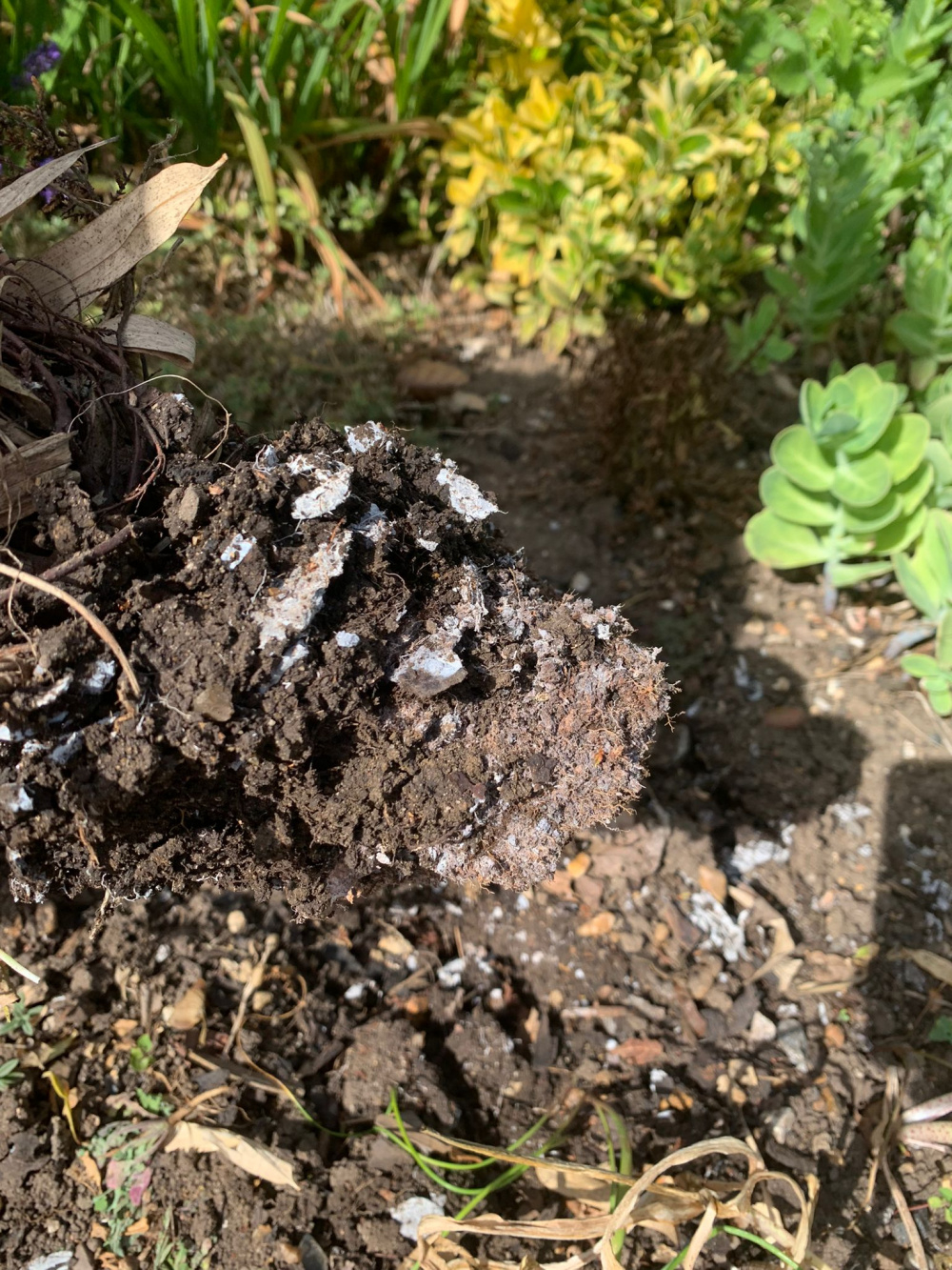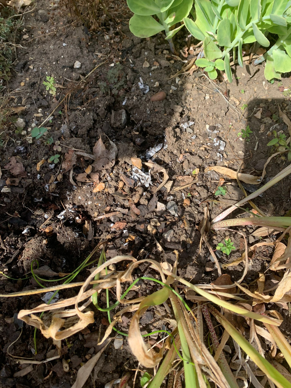 I was moving some plants around the other day and noticed that there is something strange going on in an area of my front flowerbed.