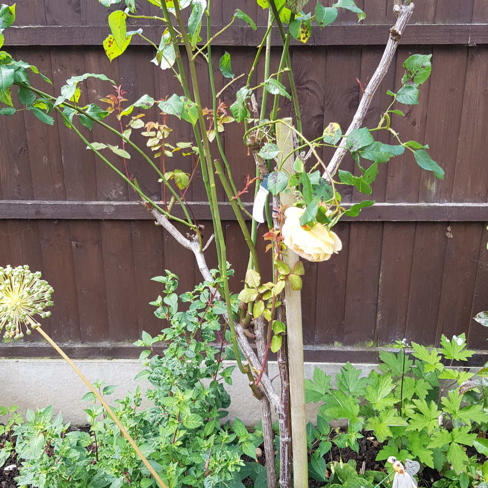I have a David Austin Golden Celebration standard rose that has developed 2 main stems has gone very leggy and hasn't had many flowers what have I done wrong