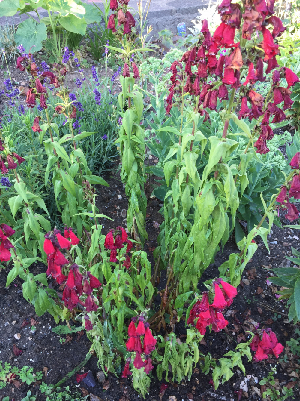 Hi all, my penstemons planted last year have started flowering again. But I probably didn't cut them back enough in the spring, and these two now look quite sad, with leaves drooping. I thought I didn't water them enough, but after I watered them more these few days, they don't seem to be improving at all. It's a full sun location, they were very happy last season, and other penstemons growing next to them are doing fine at the moment.