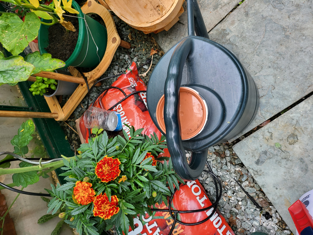 It was such a shock to find a small dead bird in the watering can, I now ensure I put a lid on it. I have a 'pot noodle' top container on for easier filling from the water butt and find that a saucer bottom for small pots fits perfectly on top, for peace of mind now. I keep it filled so the temperature is kept ambient for the tomatoe and pepper plants.
