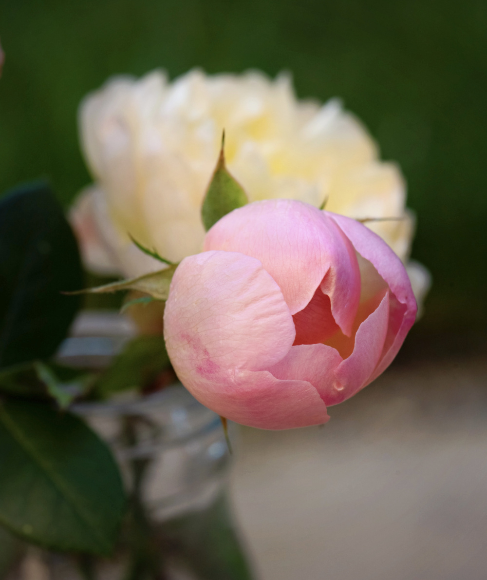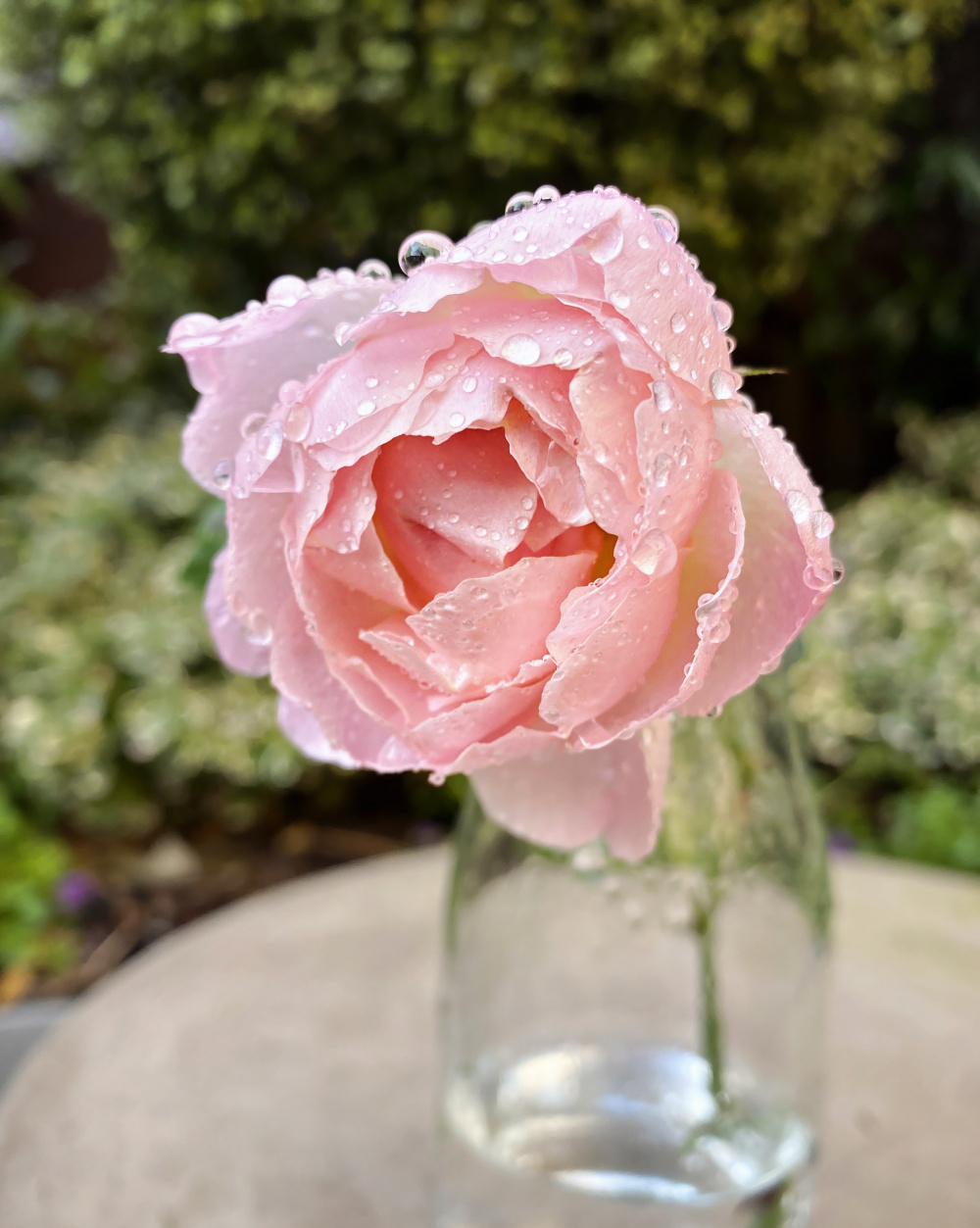 Oh yes, a single rose from my WOH — its very last bloom, in January this year — did turn pink. This was the only time I’ve seen it happen, probably because of the cold. I couldn’t believe it so I took pictures (ignore the yellow rose in the background of the first photo, that is Vanessa Bell)
