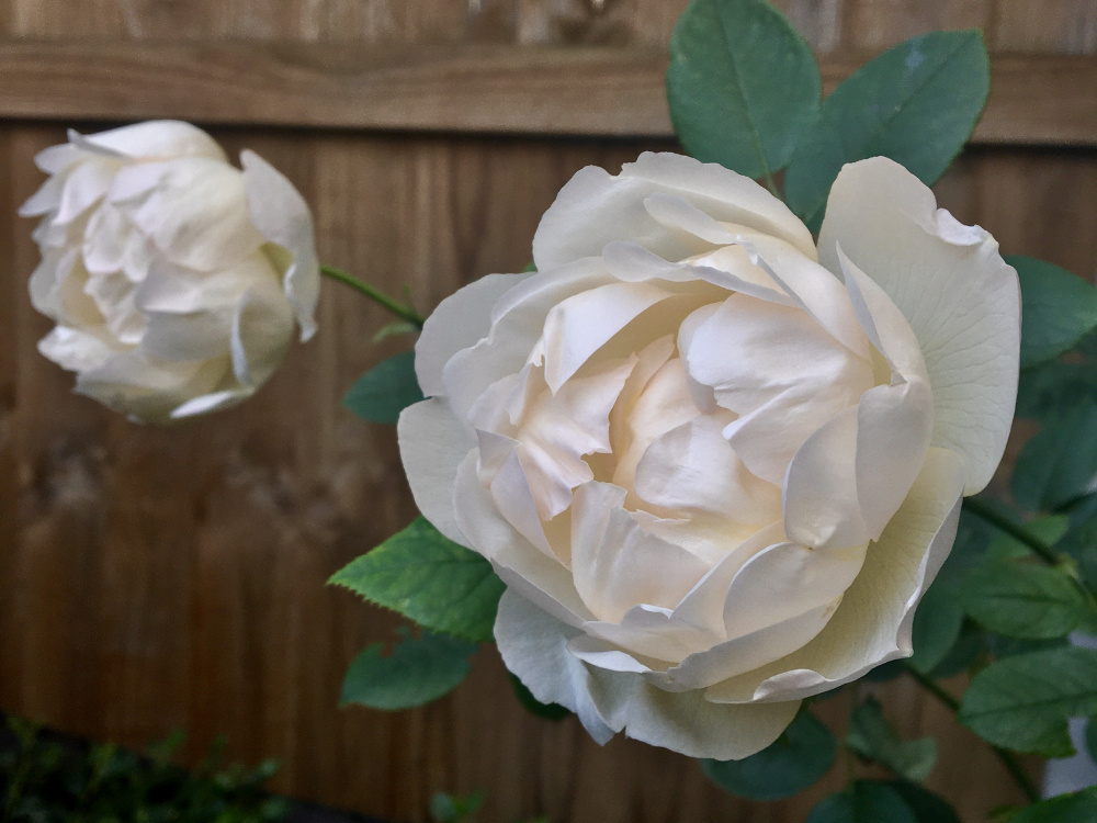 The canes are smooth with few thorns and very pliable, so it should be easy to train. I think it’s an elegant rose but I will admit it’s not as floriferous as I’d like. I’m hoping it will grow more flowers over time. I do like its strong, non-rosey scent (haven’t smelled Buff Beauty) and love the pale delicate colour.