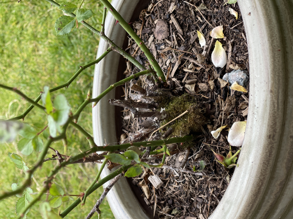 I have this inherited rose, I’m not overly confident with roses, should the base be protruding like this,?how can I invigorate the plant? It’s ver spindly.