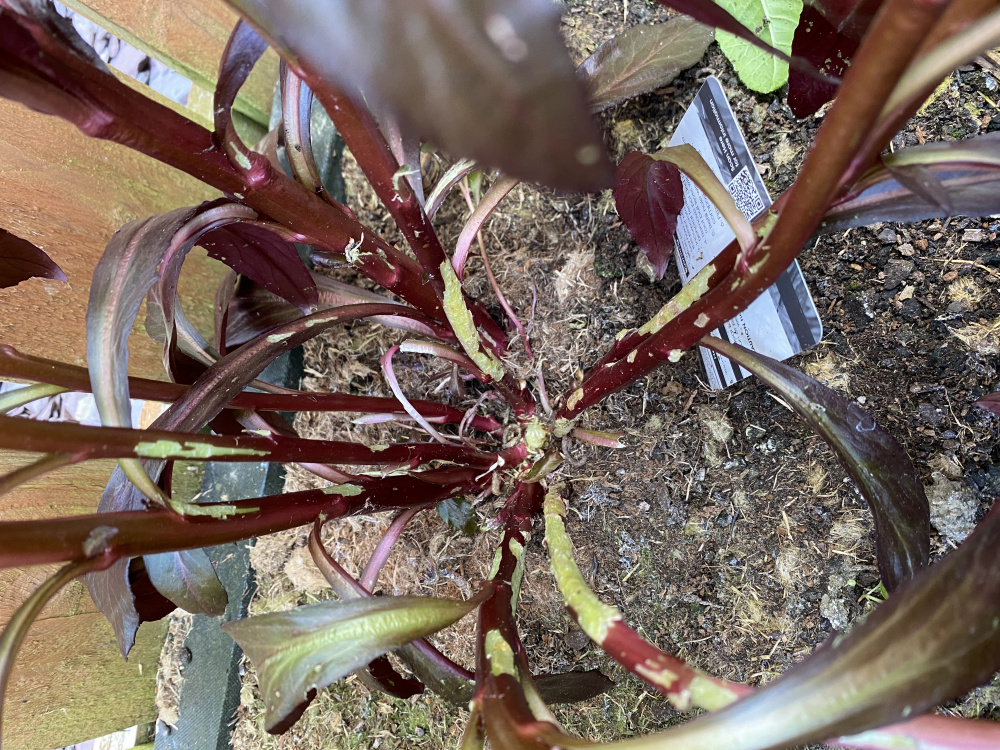 Hi we have two lobelia queen Victoria’s in our garden that seem to look shredded like someone has peeled the stems, any idea what it is and what we can do about it?