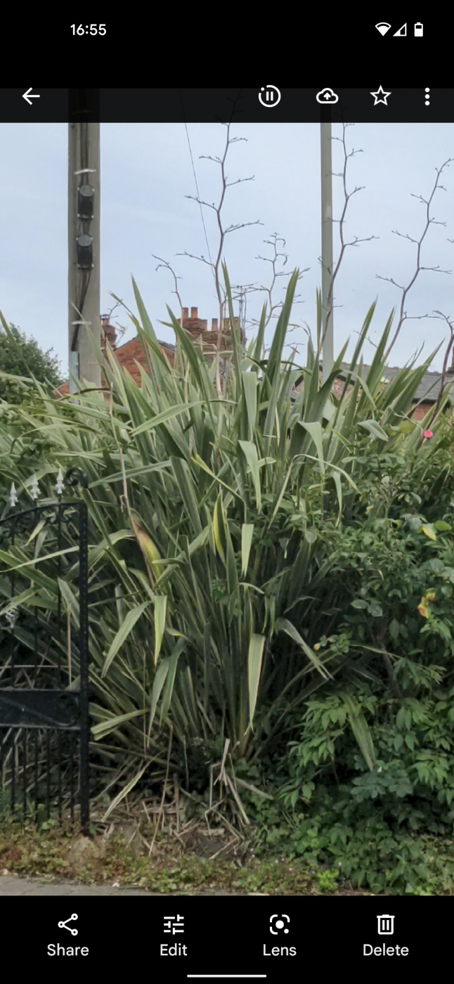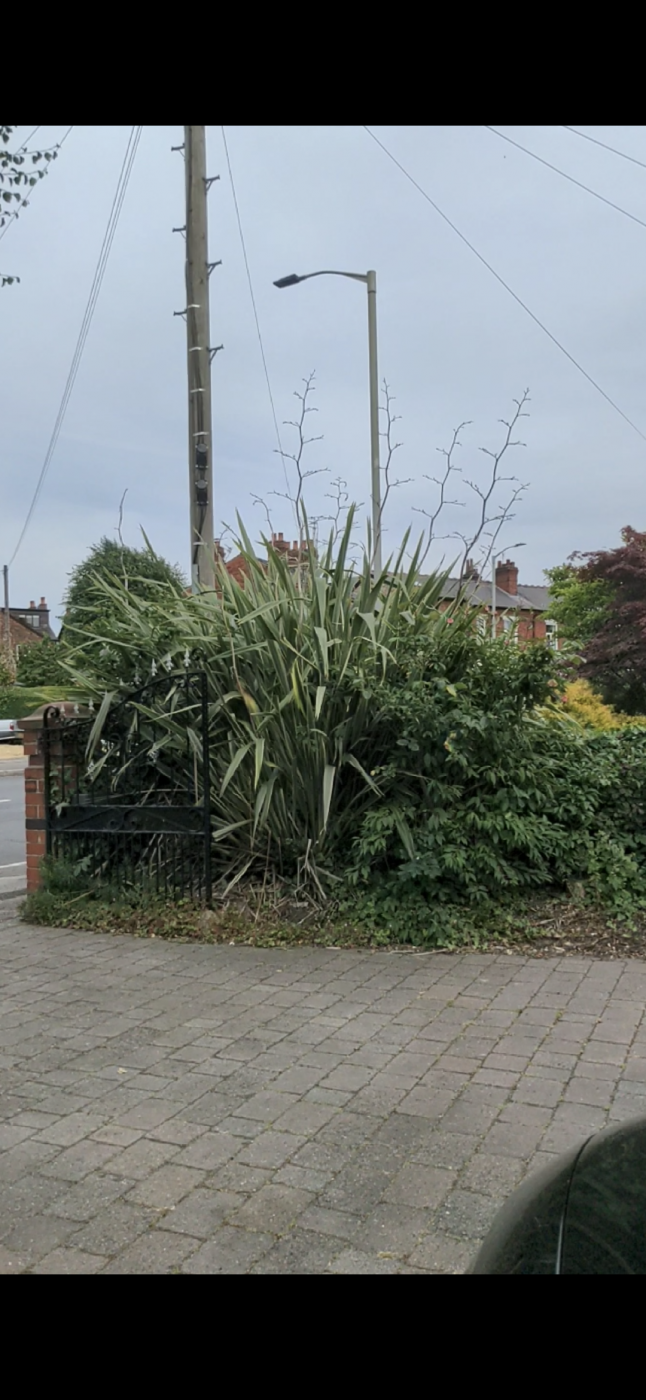 We are wondering if you knew what this plant is. And secondly how on earth we tackle chopping it back to a reasonable size. We aren't even sure what tools to use for the job and how to go about it. (Yes sorry we are amateurs!) Any advice at all greatly appreciated!