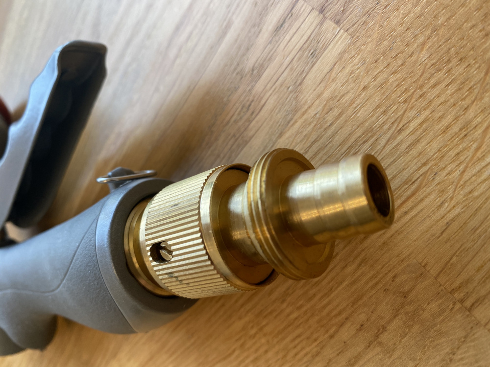 I am trying to fit a brass nozzle to my garden hose. It feels like it should be easier than this, but I seem to be a component short. Is there a brass component I can buy (150mm diameter) that fits between two threaded ends (one at the end of the garden hose and the other fitted to the nozzle)