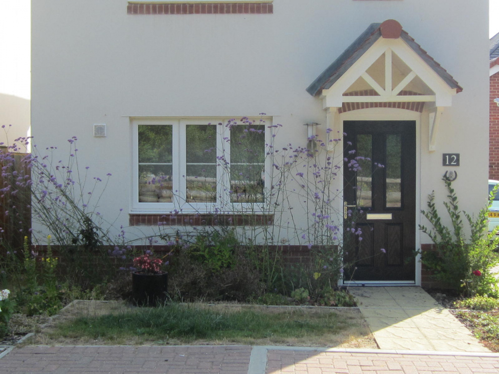 Hello, I'm after some advice please. I live in a new build and I'm on clay soil. Around the edges of paths, near the roads and house I have noticed there is a lot of builders rubble and aggregate spilling under the soil so the ground dries out quickly as the soil is very shallow. Everyone's grass on the estate looks similar and I try to be green and don't want to waste water on it. (I already put the washing up water out on flower beds). I have this small 'lawn' (182cm x 116 cm) outside the front of the house, south west facing - it looks pretty awful. A contractor comes round and mows the whole estate once every 6 weeks or so. Even when we have rain and in the winter, the edges are still all dried up and dead. I try and choose plants good for wildlife and pollinators and this definitely does not have any wildlife value. I thought about something like creeping thyme instead, but the soil is very shallow there and I think I would have a similar problem. I'm considering just taking out the grass and laying a weed barrier and filling it with red gravel and putting some planters on it instead with some plants for pollinators. I'm not an experienced gardener and don't know who else to ask. Any design / style suggestions I would be grateful for please. Thanks