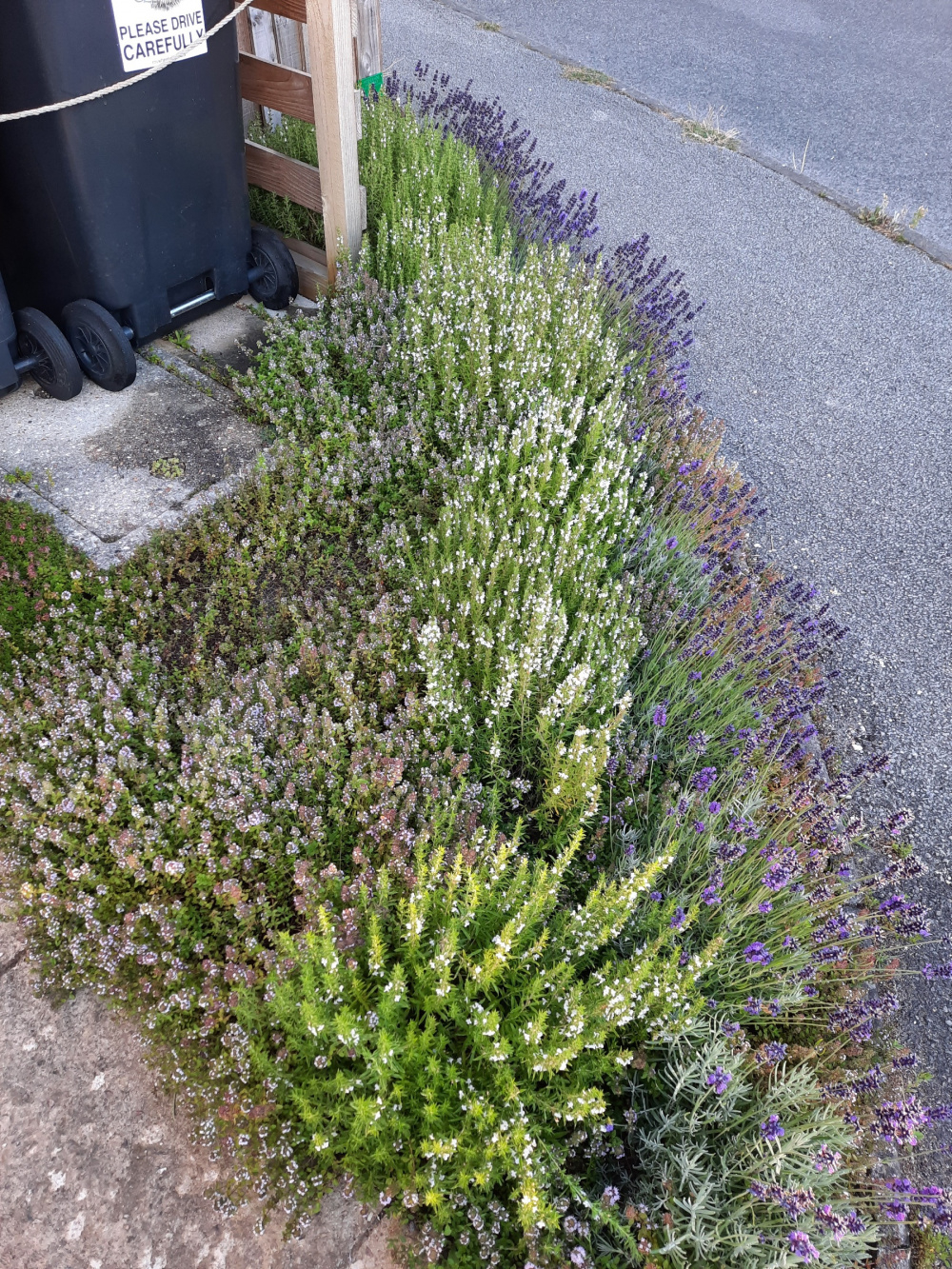 Its needs hardly any maintenance and I barely water it now it's settled in a year later. The larger area still needs thickening up, but there's cosmos to fill the gaps.