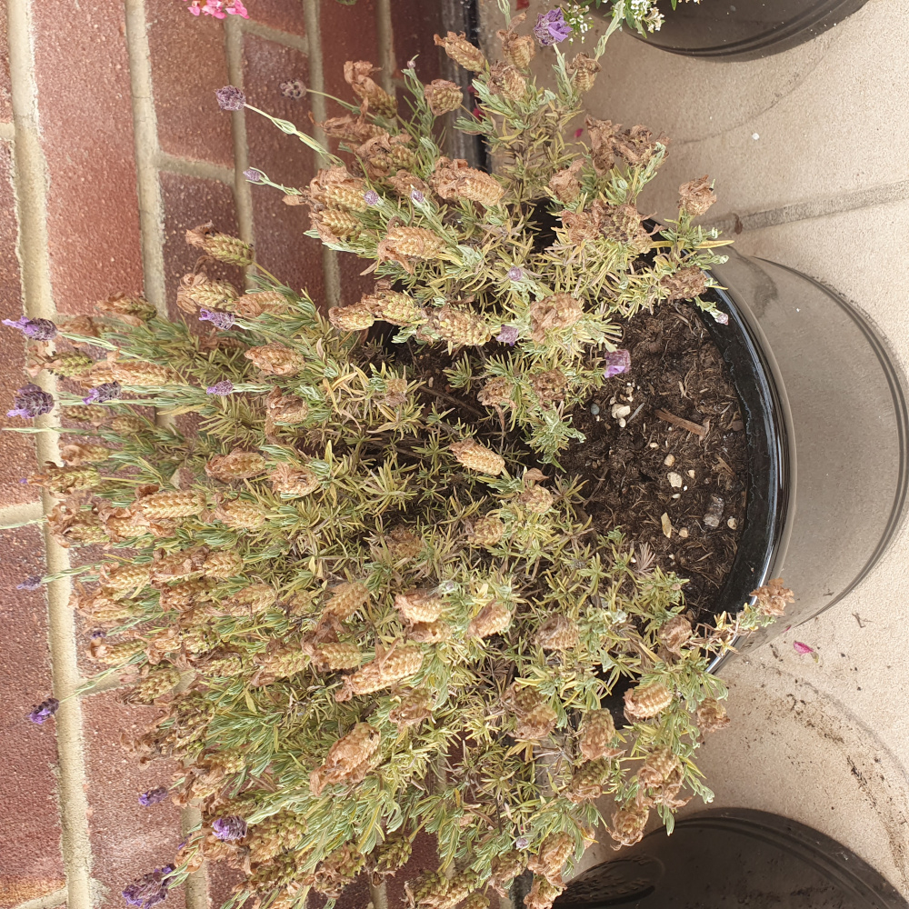 Anyone know whats wrong with my lavender stoecha? Been like this for 2 months now (even before the drought) was looking so green and healthy before. Bought it last year.