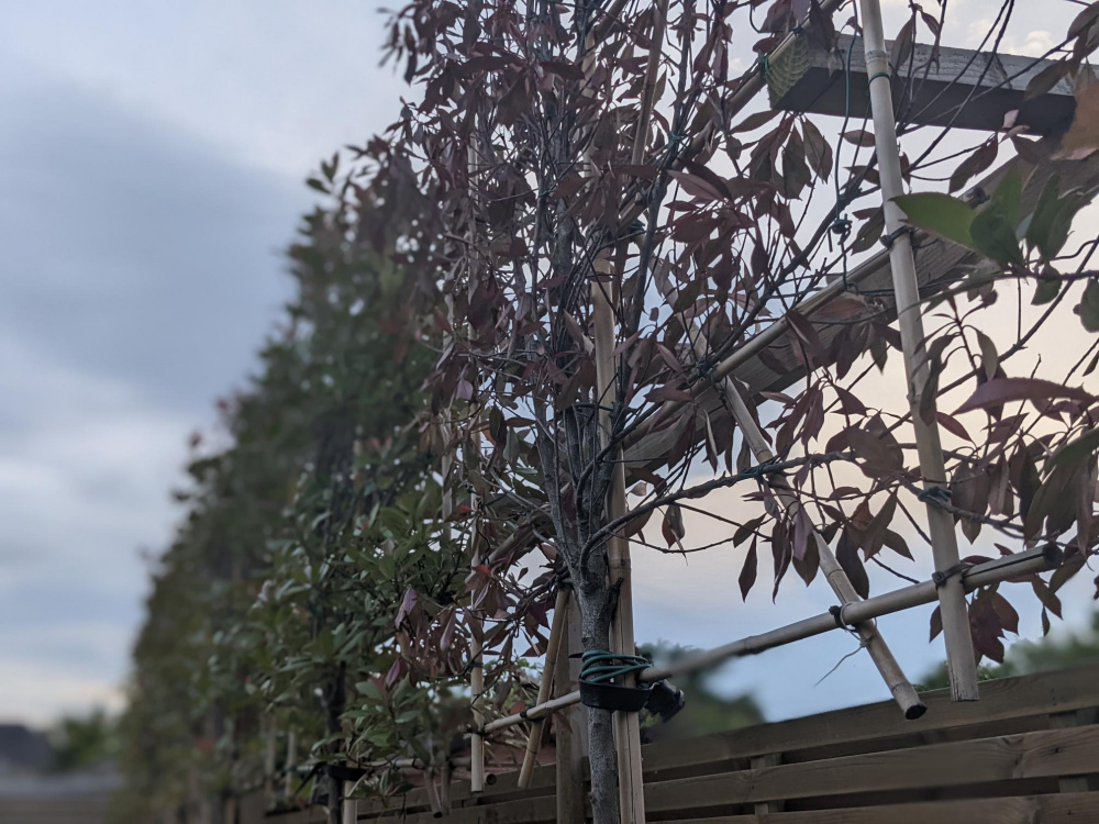 Looking for some advice to help with my tree problem. We bought 10 expensive pleached photinia red robin trees about a 1.5 years ago...sadly our gardener didn't have a clue about planting trees and clay soil and one died after about 6 months. I then replanted all of them myself removing the clay soil as best as possible and improving the drainage. Most of them are doing fine but one isn't....it was massively over watered by accident and I didn't remove enough clay soil and mulched too much etc - it went down hill a little compared to the rest i.e. slow growth and limp leaves etc. I took it out and sorted the wet soil, drainage and dryed it out....inpected the roots and they seemed ok. Question is whether I should remove the leaves to help the energy of the plant or just leave it alone? I dont want to feed it but seems to be getting into a poorer state each day. Thoughts appreciated.