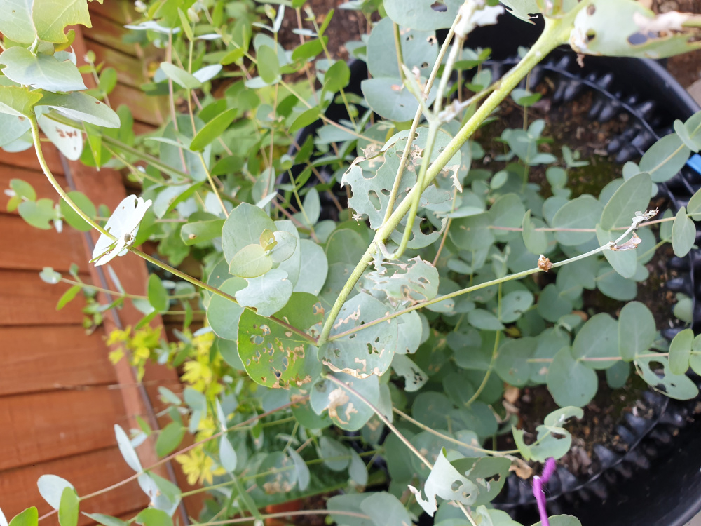 Hi. I cut back my eucalyptus gunnii and it's grown some lovely new foliage. However, something is now eating it! I can't see any bugs on it so can't work out what it is. Does anyone have any ideas as to what it might be please?