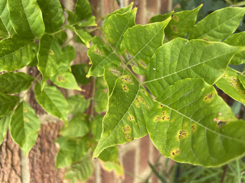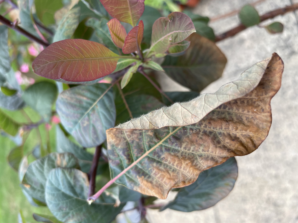 Hi. I recently discovered my Smoke Bush like this. It’s potted and stood on a wood barked area. Could it be Verticculum Wilt? Also in the same area but planted directly into the soil covered by wood bark is my wisteria of 3 years. Could it be the same thing? The brown spotting is on most leaves but none are dying. Yet! Does it spread even if one pot is infected ? Maybe through drained water from the infected pot? We have severe hot weather atm so maybe it’s lack of water?
