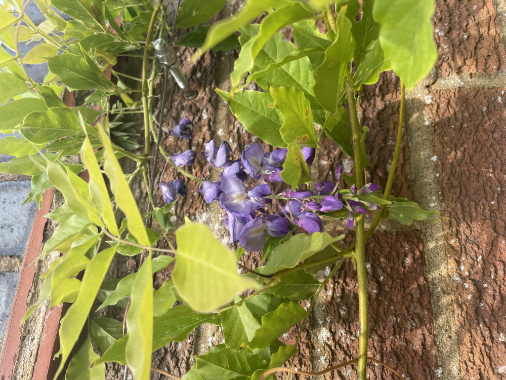 For the wisteria, give it a good drink of 15 litres of water poured slowly so it soaks in rather than running off. Repeat once or twice weekly until normal rain service resumes.