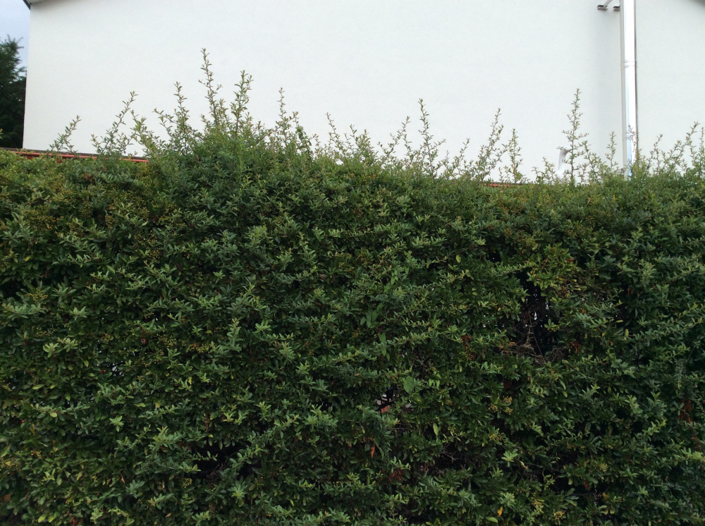 So, the pic below is of a very old and very established Firethorn hedge. I had to get rid of some as it was beyond saving but want to keep this stretch. However, it is far too high and I want to reduce it to a more manageable size. Guess it’s about 8ft-9ft and want it down to no more than 6.5ft. No idea how to go about it and what tools to use as when I trim it I can hear the hedge laughing at my hedge trimmer and there is no way a hedge trimmer will do trick!!
