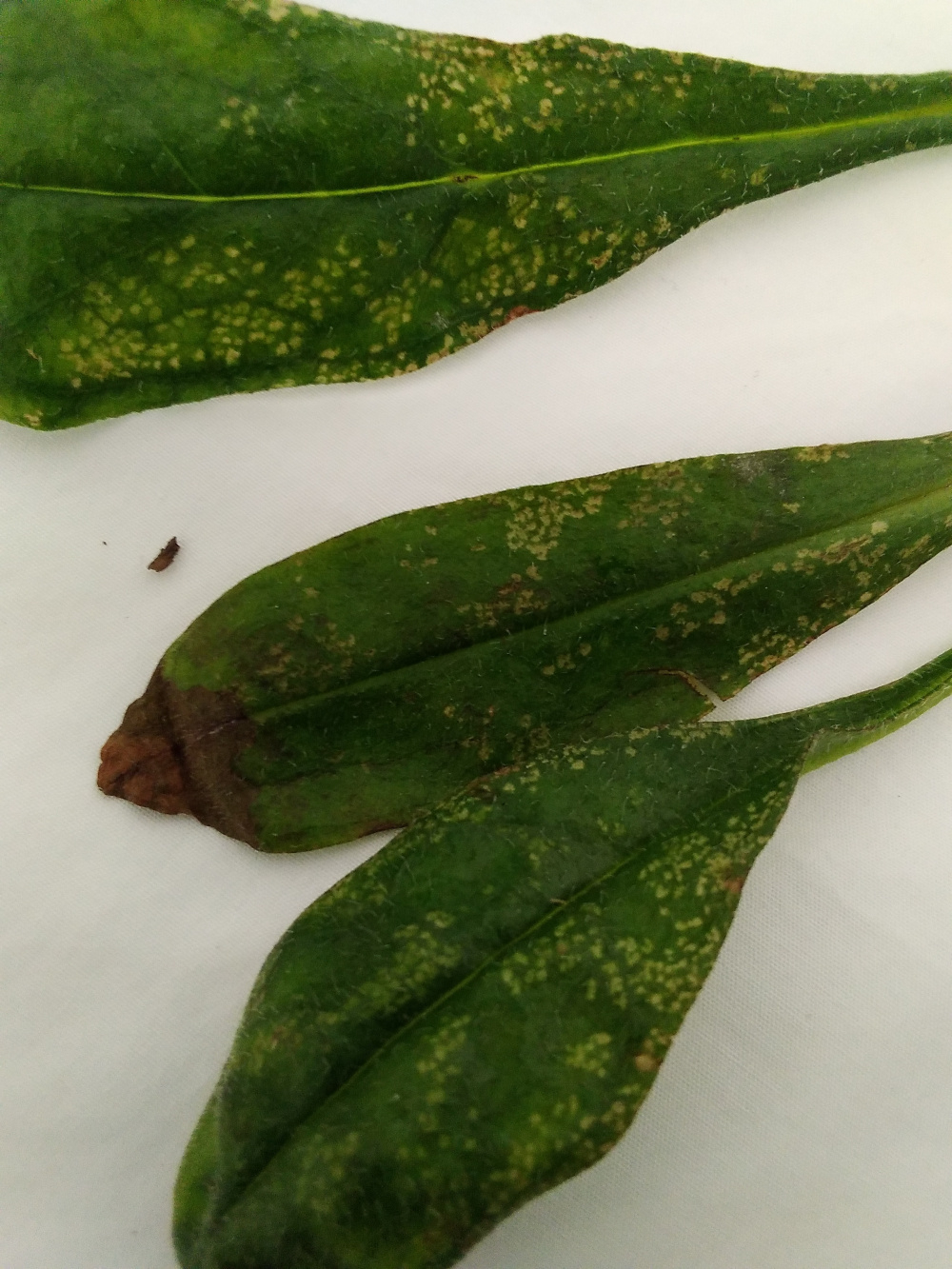 Morning all can anybody tell me why the leaves are going all distorted with white spots