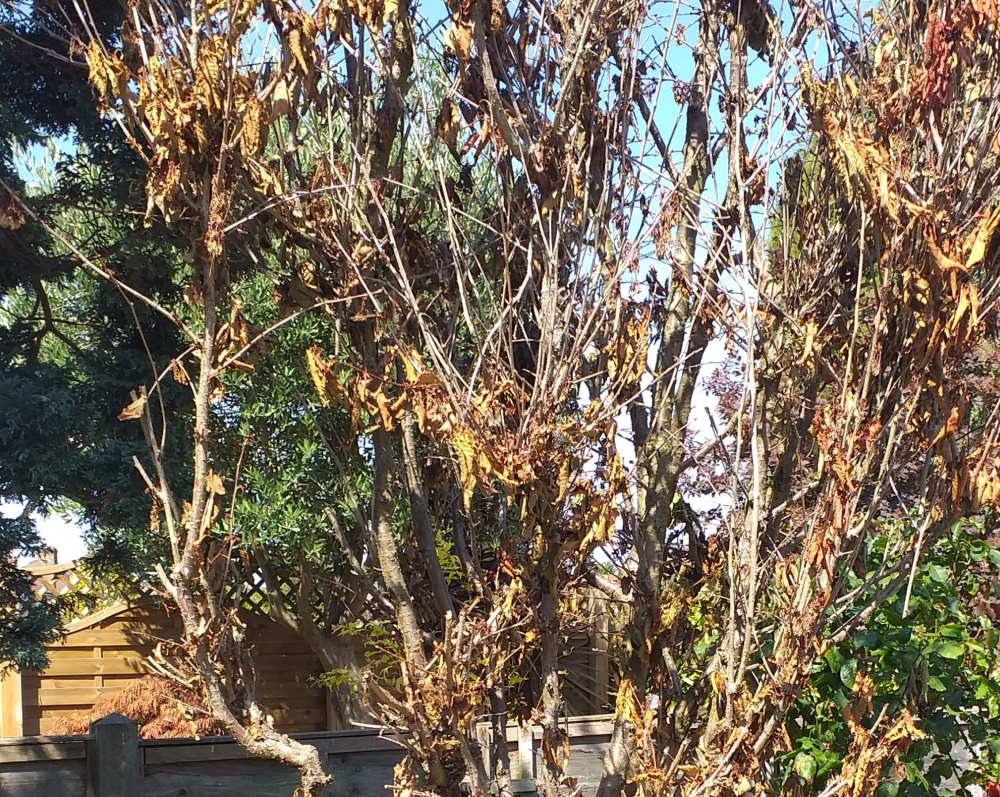 Ornamental cherry with burnt leaf