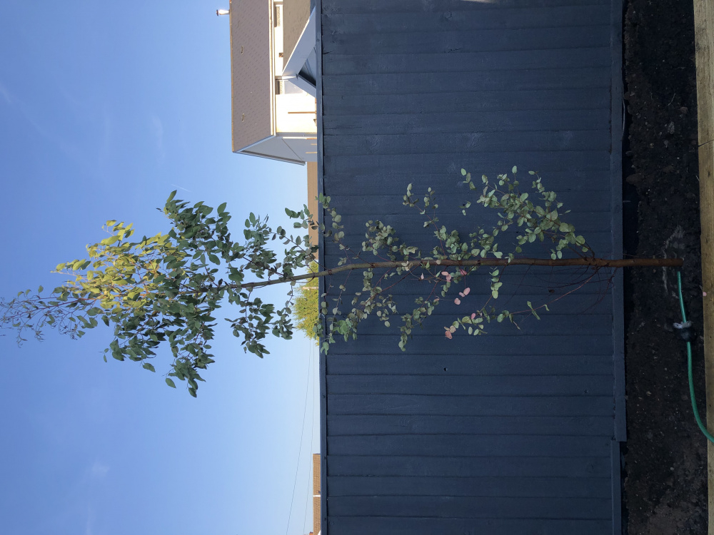 Hi all - I transplanted a cider gum into a new garden bed yesterday and it’s already starting to dry up and turn. I’m hoping someone can help me save it! I realise that doing this in a heatwave in the heatwave was probably a bad move; I’m an Aussie expat and just know these to be hardy and this isn’t even that hot to what I’m used to - I did it in cool of morning but I’m wondering if it’s still a silly thing to have done! Either way I really hope it’s not a goner as it means quite a bit to me! Thanks so much, photo attached (top shoots starting to shrivel and all the leaves have gone crispy). I’ve given it good soaks including when I planted it (didn’t use rooting hormone). I had purchased this from a nursery at 7 foot high and planted it in a bed of mine for a year where it grew another foot until moving it here. As far as im aware I didn’t cut through any major roots and moved a decent root ball.