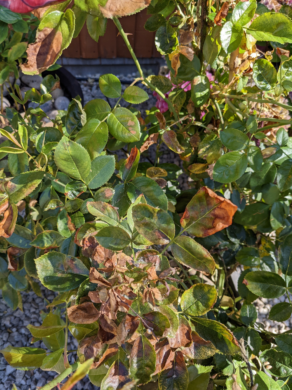 The two pics are of a couple of my roses, leaves browning and dying etc - any suggestions as where i start my recovery research?