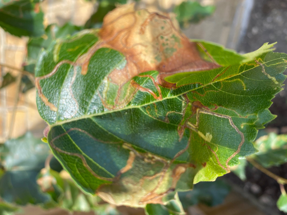My young silver birch has brown leaves, I thought it was the hot weather but they seem to have squiggles on them, so is this a pest? There are also ants in the tree - is this something to worry about?