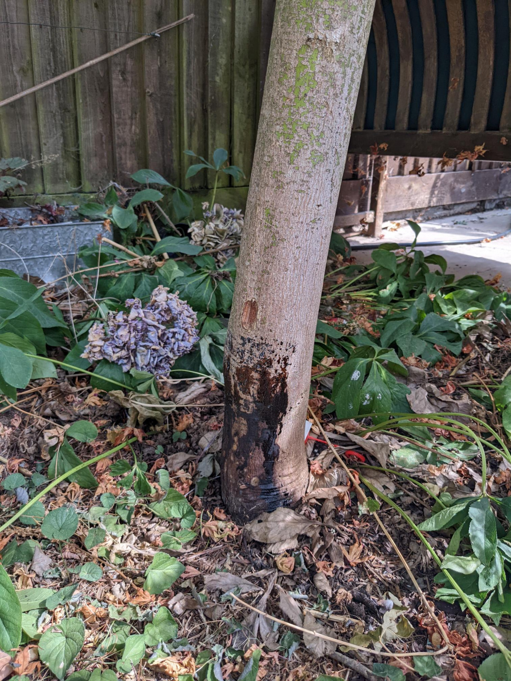 Hello Gardeners World Forum. Novice gardener here trying to save my Japanese Maple from this worrying blackness that has appeared on the trunk. Any advice very welcome!0