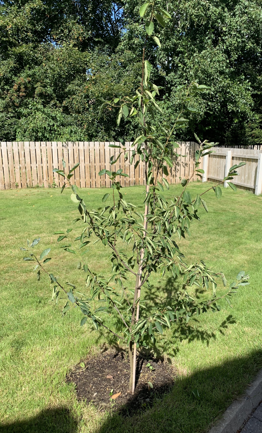 Hello, my friend gave me a tree at the beginning of summer - I'm not even sure what type of tree it is? - I planted it in a decent sized hole with compost. I then went away with my family for 6 weeks but a friend who was kind enough to look after our house watered it and some of our other plants whilst we were gone.