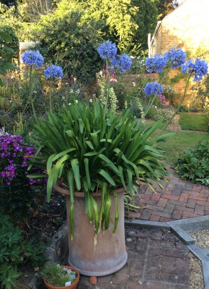 This is agapanthus Storm Cloud. It sits in a tub trug with grab handles, the theory being I could pull it out of the terracotta pot when re-potting time came around. No chance. It’s rammed solid.