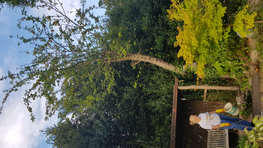 Apple tree hard pruning.