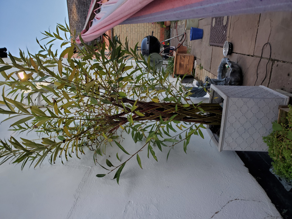 Salix not looking great. been watering everyday . Cut back? Bigger pot? On bricks