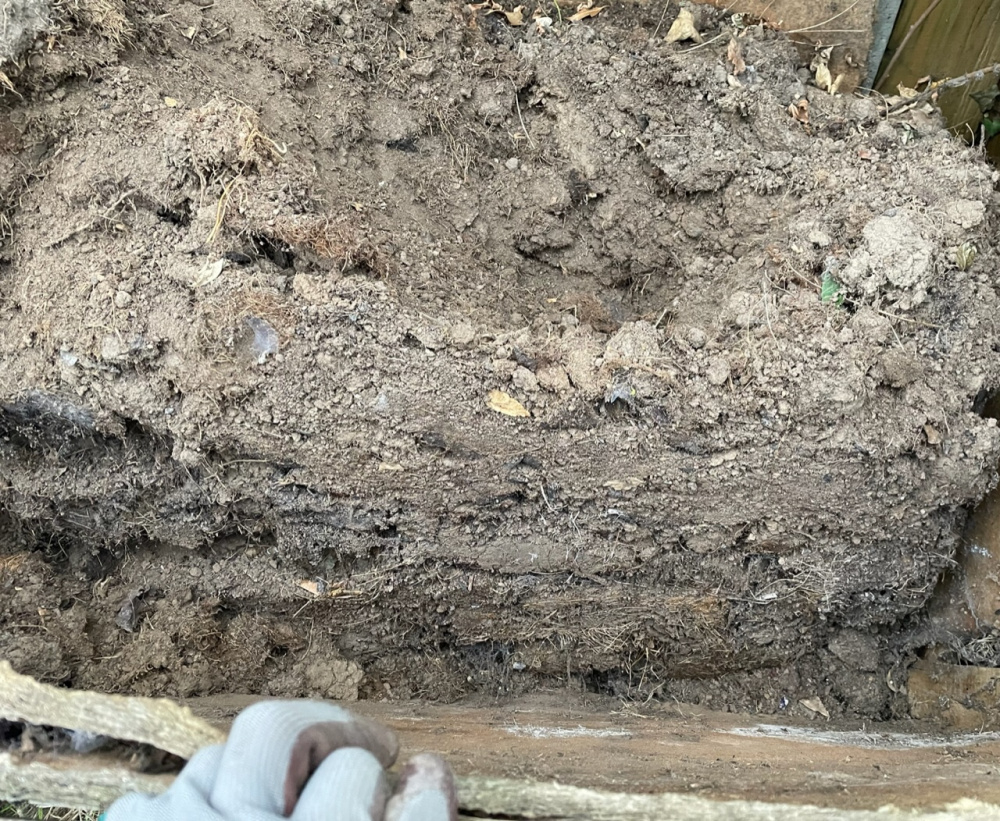 Further problem is that I’ve dug a new bed, 2.4m x 2.4m and was planning to add the “loam” from the turf stack. Freeing up the space for the turf I’ve just dug up. Genius on paper 🙂