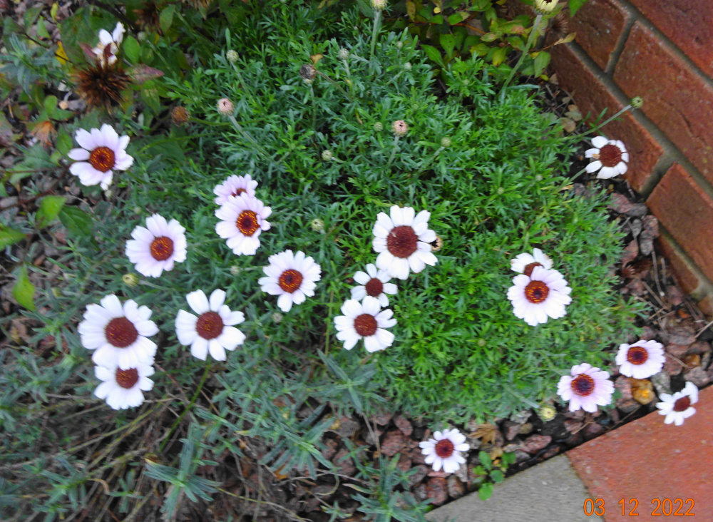 'Wild Rover' I hope to prune very soon.. Pittosporum 'Tom Thumb' makes a nice small evergreen.. Griselinia brightens the place up in winter.. ..this Rhodanthemum flowers most of the year.. ..as does Parahebe 'Avalanche'..