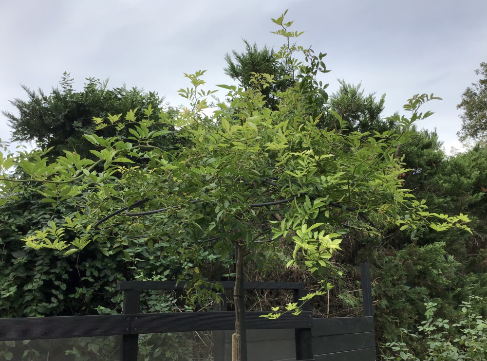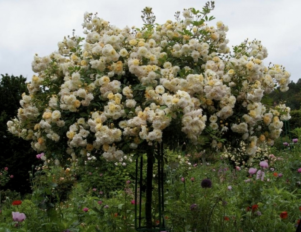Ghislaine de Feligonde, hybrid multiflora rambler [Turbat, France 1916] needs no introduction since many of you have grown it far longer than me. I got it as a large standard and it’s demonstrated it’s famed vigour in the first season. Blooming is over now but this is what it looks like - some interestingly jaunty canes: