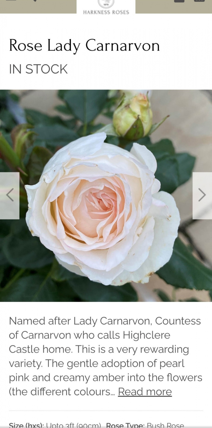 I have been watching the series about Highclere on TV, and the preview of next week shows Lady Carnarvon at the Chelsea flower show with a Harkness rose named for her. I do like the look/ colour of this one.