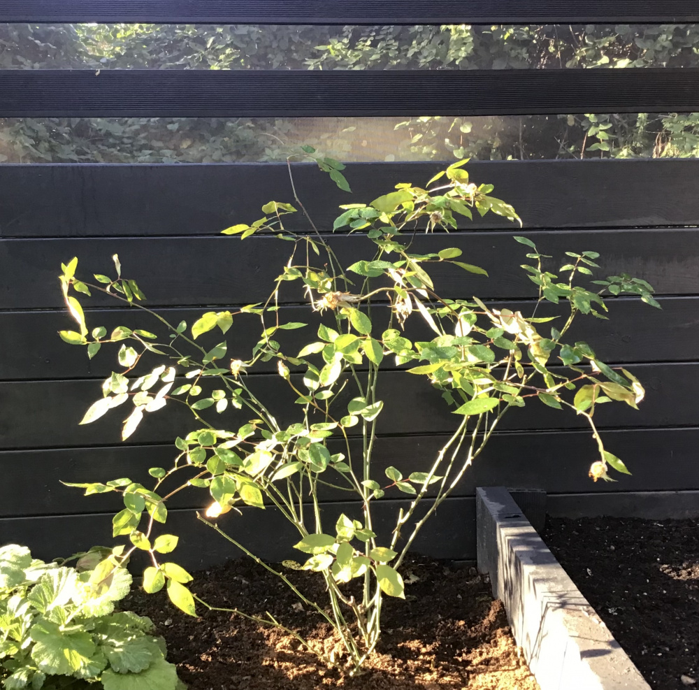 The climbing sport of Lady Hillingdon looks a fabulous rose and will be more familiar to most, but I don’t have a ton of spaces for climbers so I chose the shrub form. As tea roses are naturally twiggy and slow to fill out I wasn’t expecting much in the first year so was pleasantly surprised. Currently around 3ft high. Early growth is a lovely purple shade and overall the shrub is healthy, still retaining most of it’s leaves with only a little end-of-season blackspot. It should be hardy enough but I will be giving it some winter protection shortly, just in case..