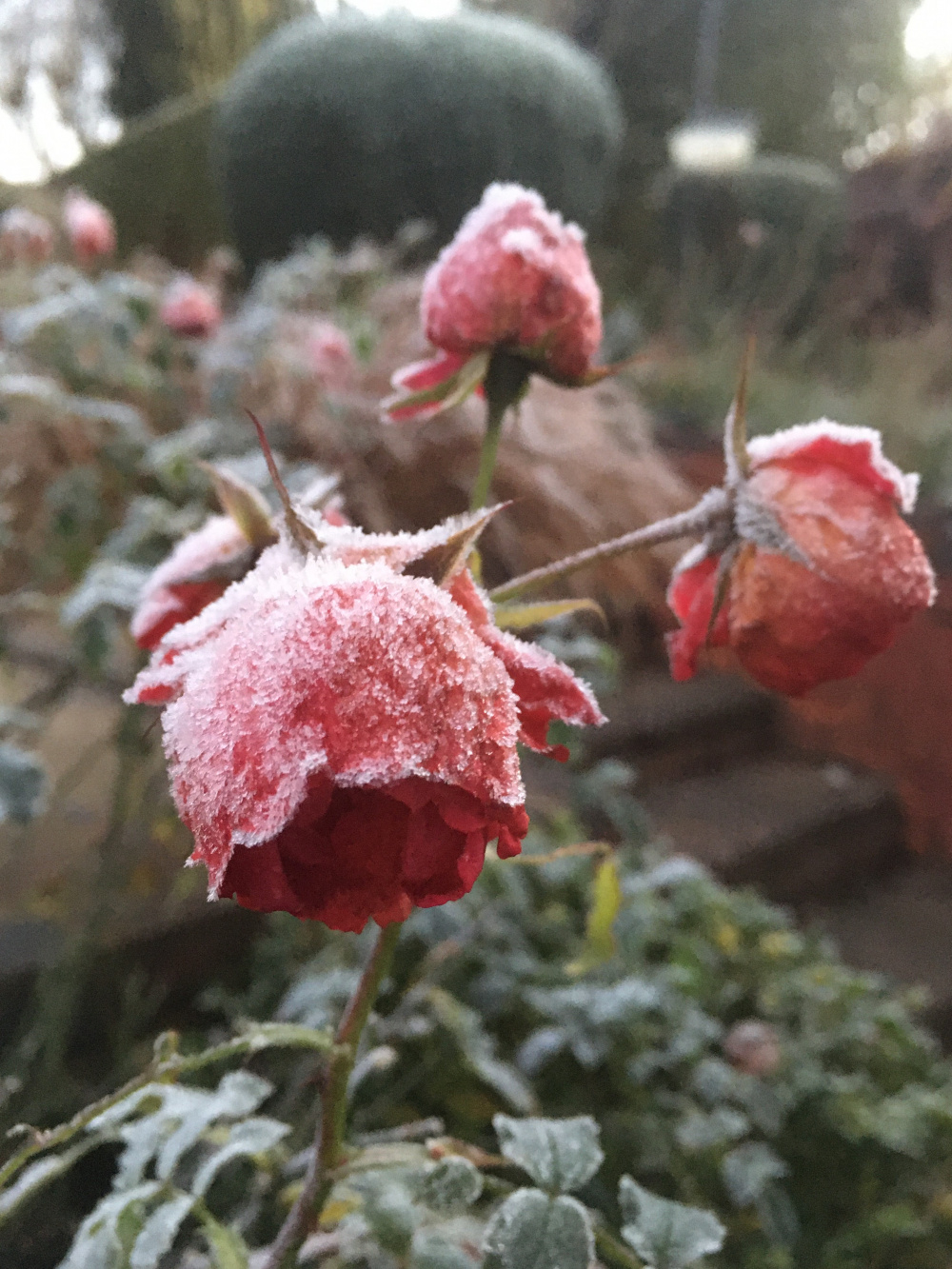 My many petalled ones continue to try and bloom but badly ball and brown in morning frosts, but I do have a secret weapon in the last to bloom stakes Mr. V! I stopped deadheading a good month or so ago, but it ignores that: