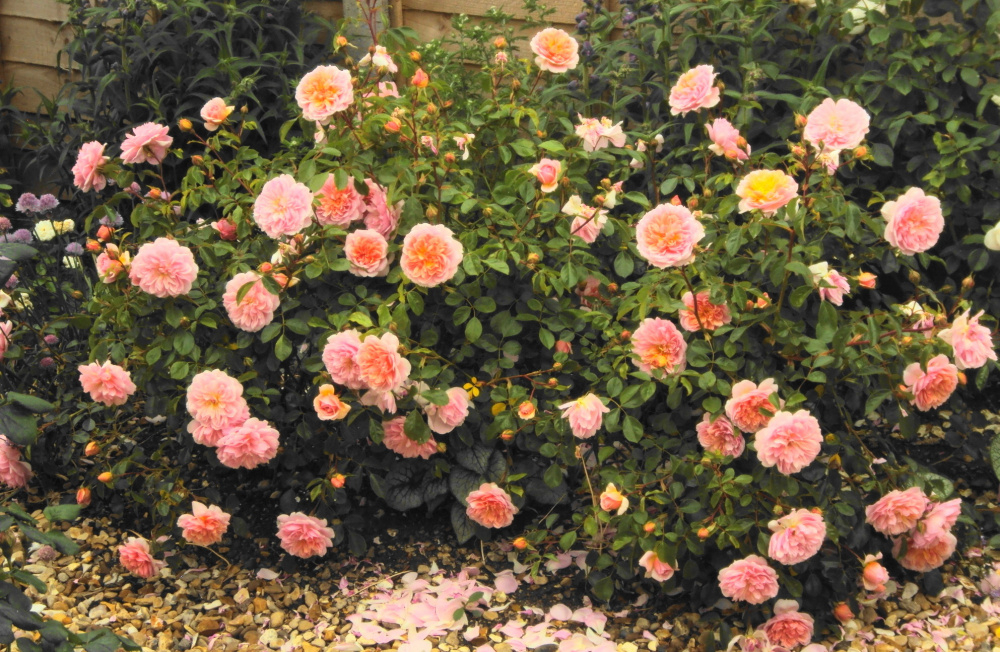 ..a melange of roses.. 'The Poet's Wife'.. / 'Forever Royal' / 'Scepter'd Isle' / 'The Generous Gardener' / 'Baronne Prevost' / 'Wild Rover'..