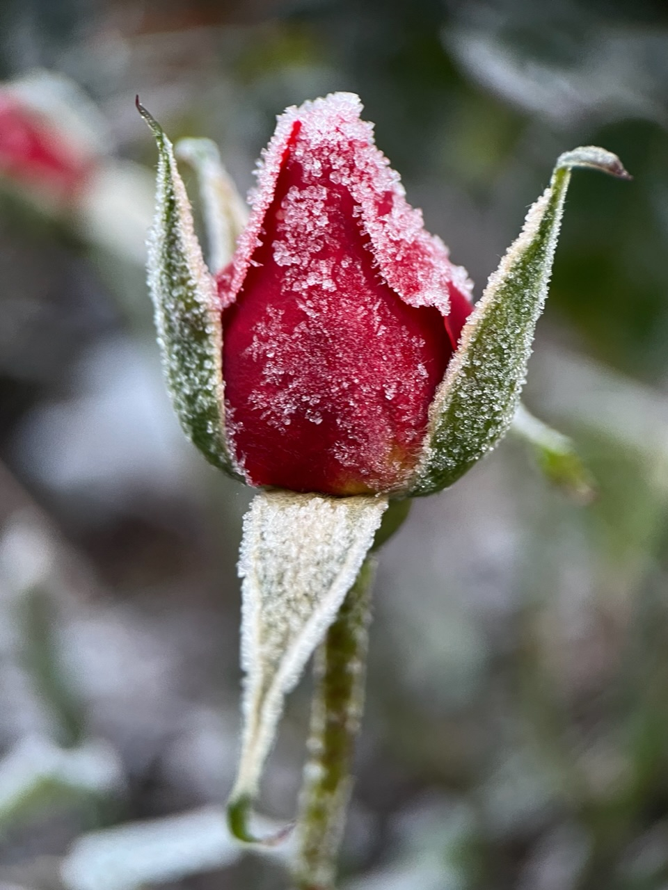 Another shivering rose for you; Night Owl. My garden is frozen solid and it looks set to continue next week but I'm away down south to do battle with the rail strikes. In a traveller way, not a union way.